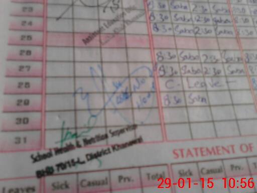 | CNIC | Full Name | Designation | R/C | Absence During Last Calender Month |