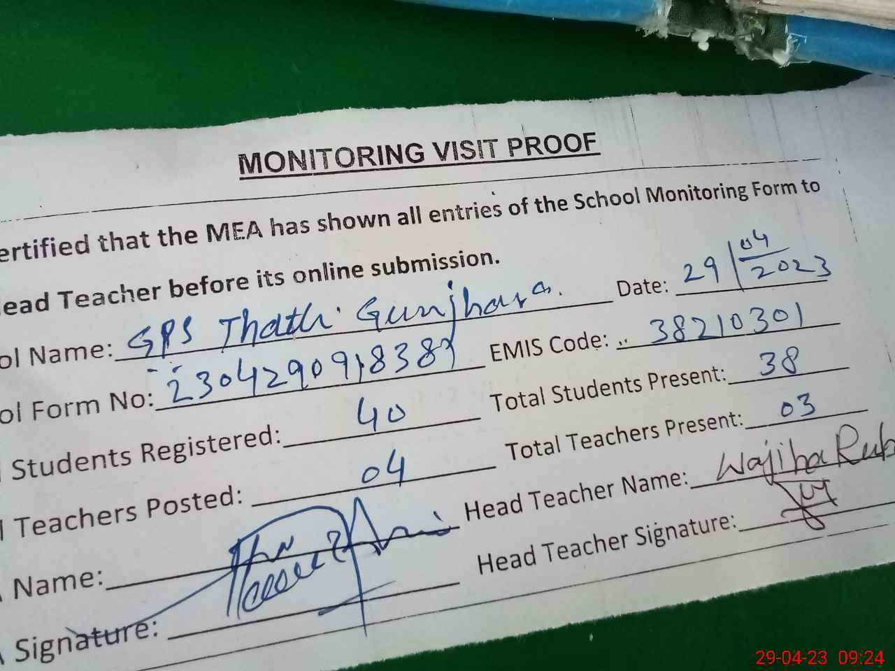| EMIS Code: 38210301 | Name of School: GPS THATHI GHANJERA | |||