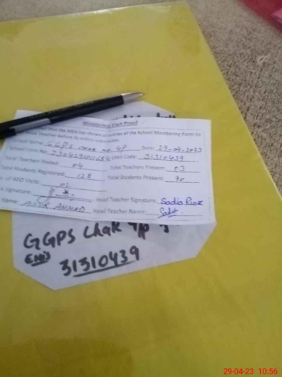 | EMIS Code: 31310439 | Name of School: GGPS CHAK NO 4/P | |||