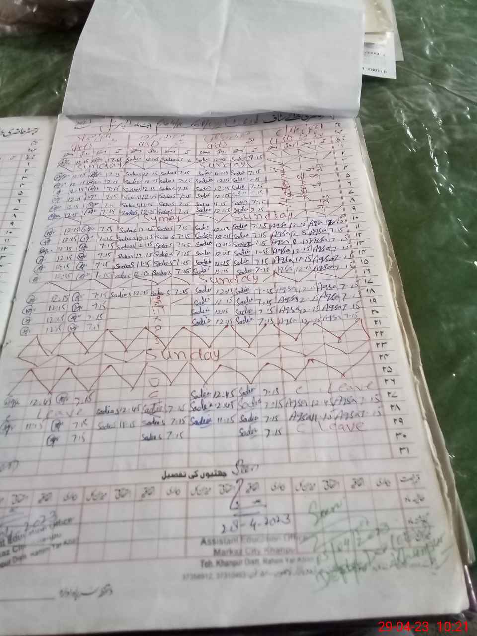 | CNIC | Full Name | Designation | R/C | Absence During Last Calender Month |