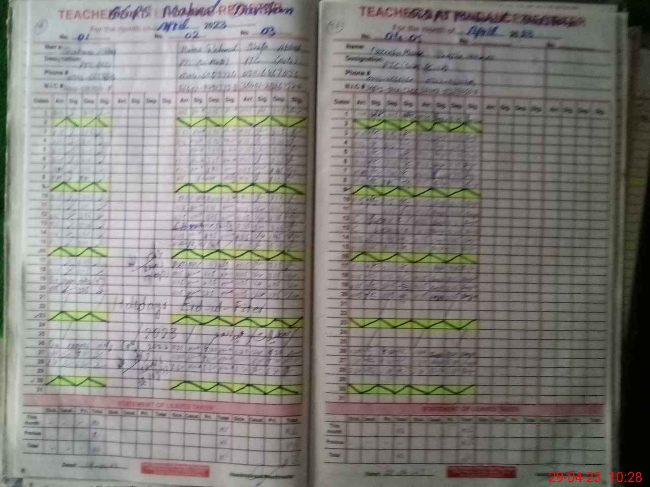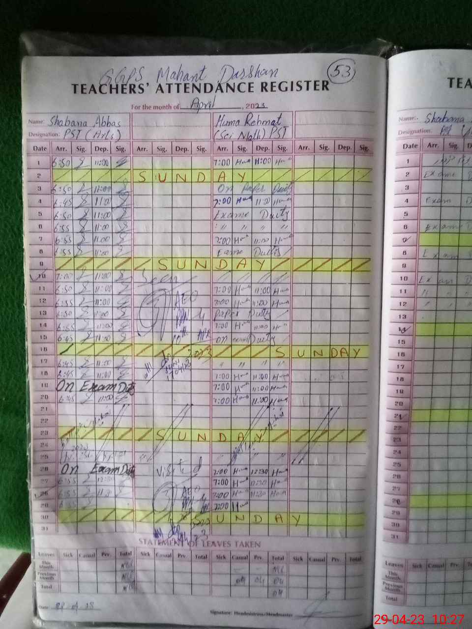 | Leave | Duty | Absent | Maternity | Medical | Ex- Pak |