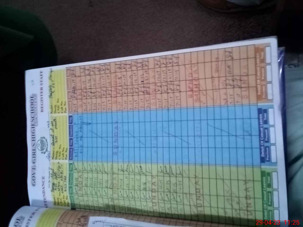 | CNIC | Full Name | Designation | R/C | Absence During Last Calender Month |