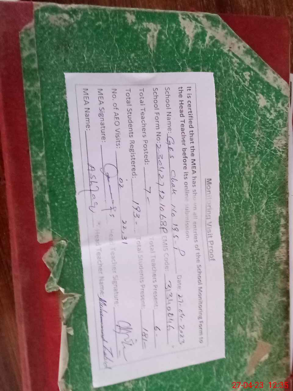 | EMIS Code: 31340046 | Name of School: GES CHAK NO 195/P SADIQABAD | |||