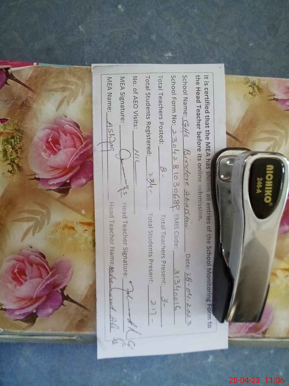 | EMIS Code: 31340016 | Name of School: GHS BINDORE ABBASIAN | |||