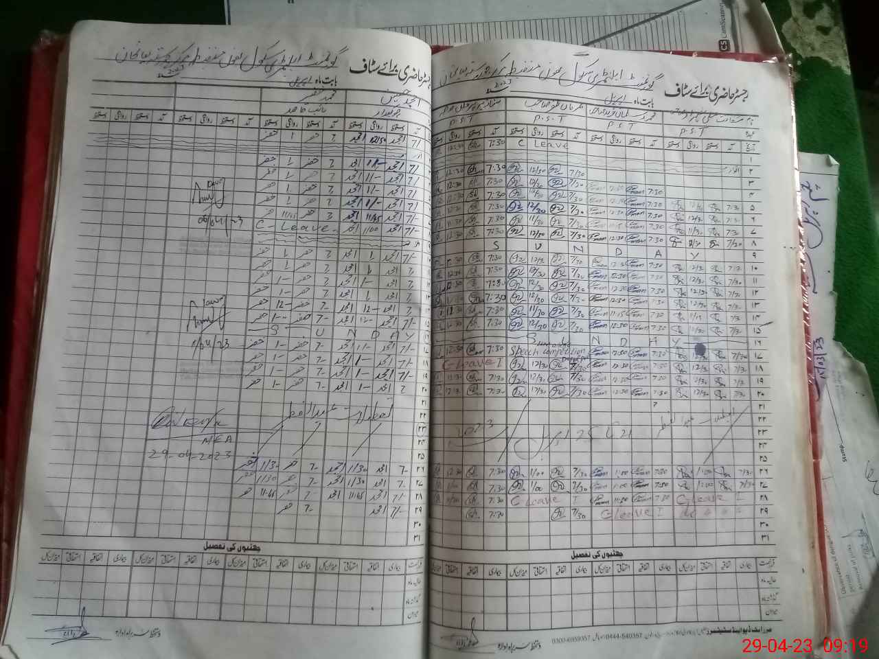 | CNIC | Full Name | Designation | R/C | Absence During Last Calender Month |