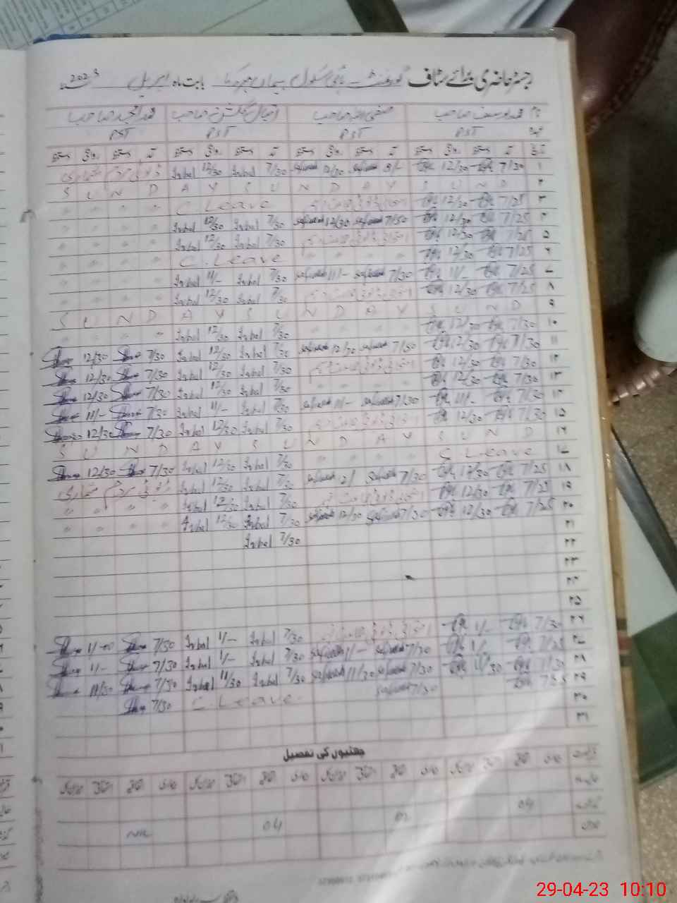 | CNIC | Full Name | Designation | R/C | Absence During Last Calender Month |