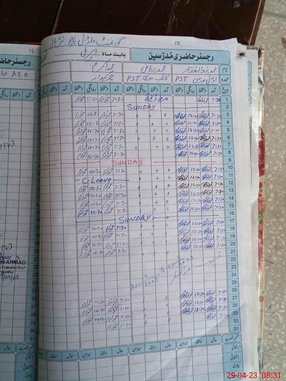 | CNIC | Full Name | Designation | R/C | Absence During Last Calender Month |
