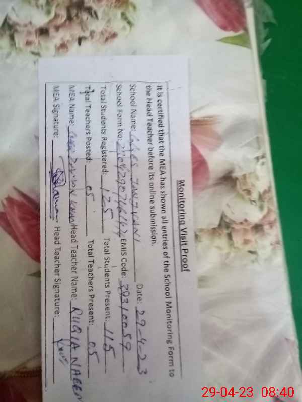 | Certified that this School was Inspected by the Undersigned MEA/DMO Today and the Information Stated Above is as Per Record. | |||||