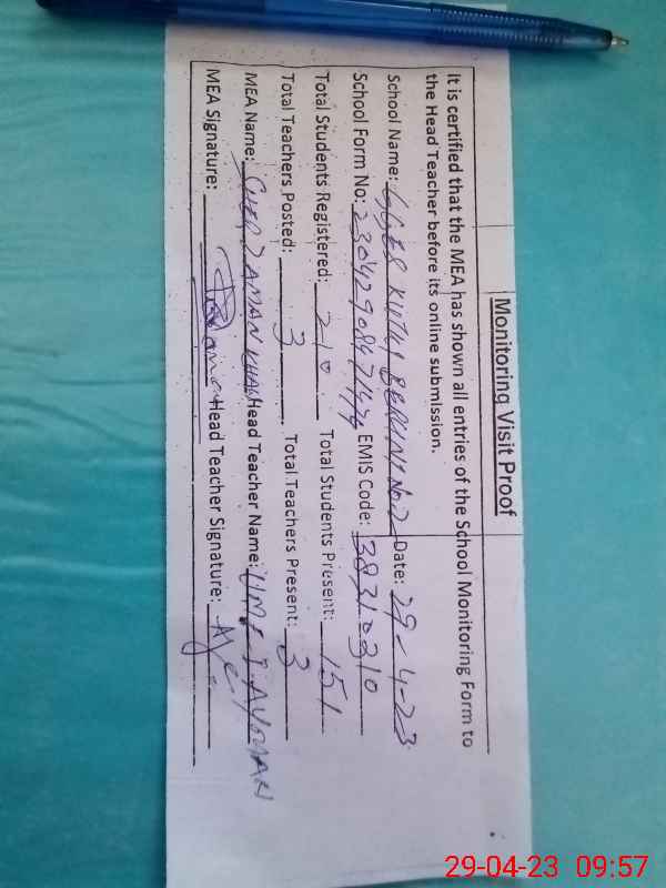 | Attendance Register | Head Teacher | MEA with School | Visit Proof |