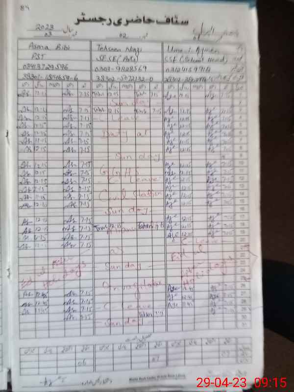 | CNIC | Full Name | Designation | R/C | Absence During Last Calender Month |
