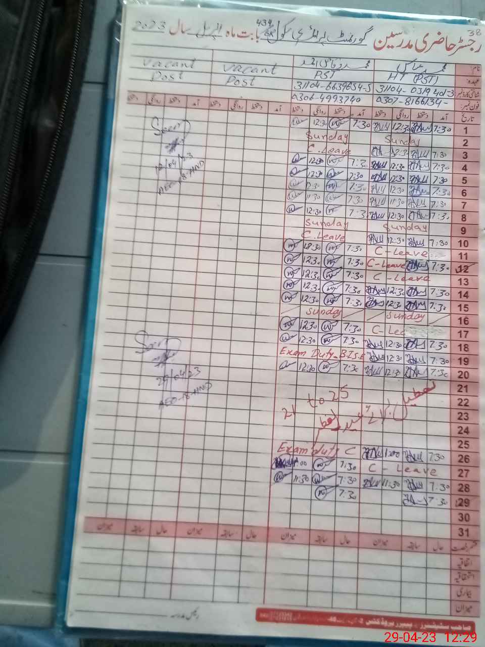 | Name: MU**** AB**** Designation: (School Headmaster's/Headmistress's) PST Phone/Cell Number: 03**** |