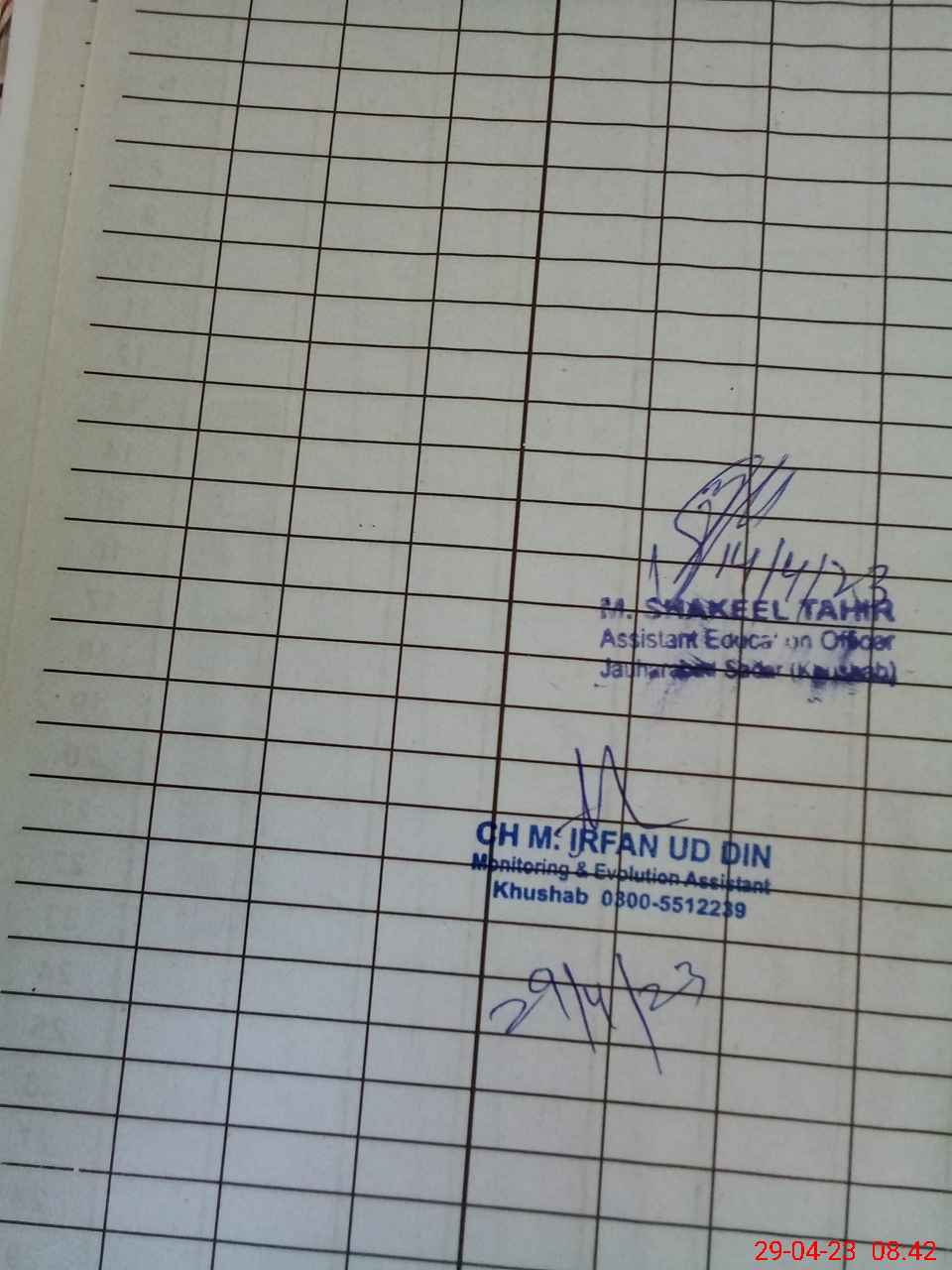 | Name: Ah**** Iq**** Designation: (School Headmaster's/Headmistress's) PST Phone/Cell Number: 03**** |