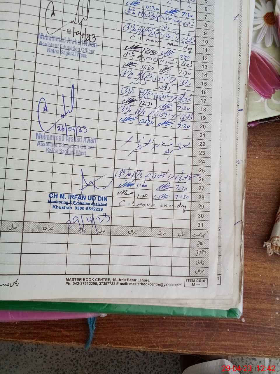 | CNIC | Full Name | Designation | R/C | Absence During Last Calender Month |