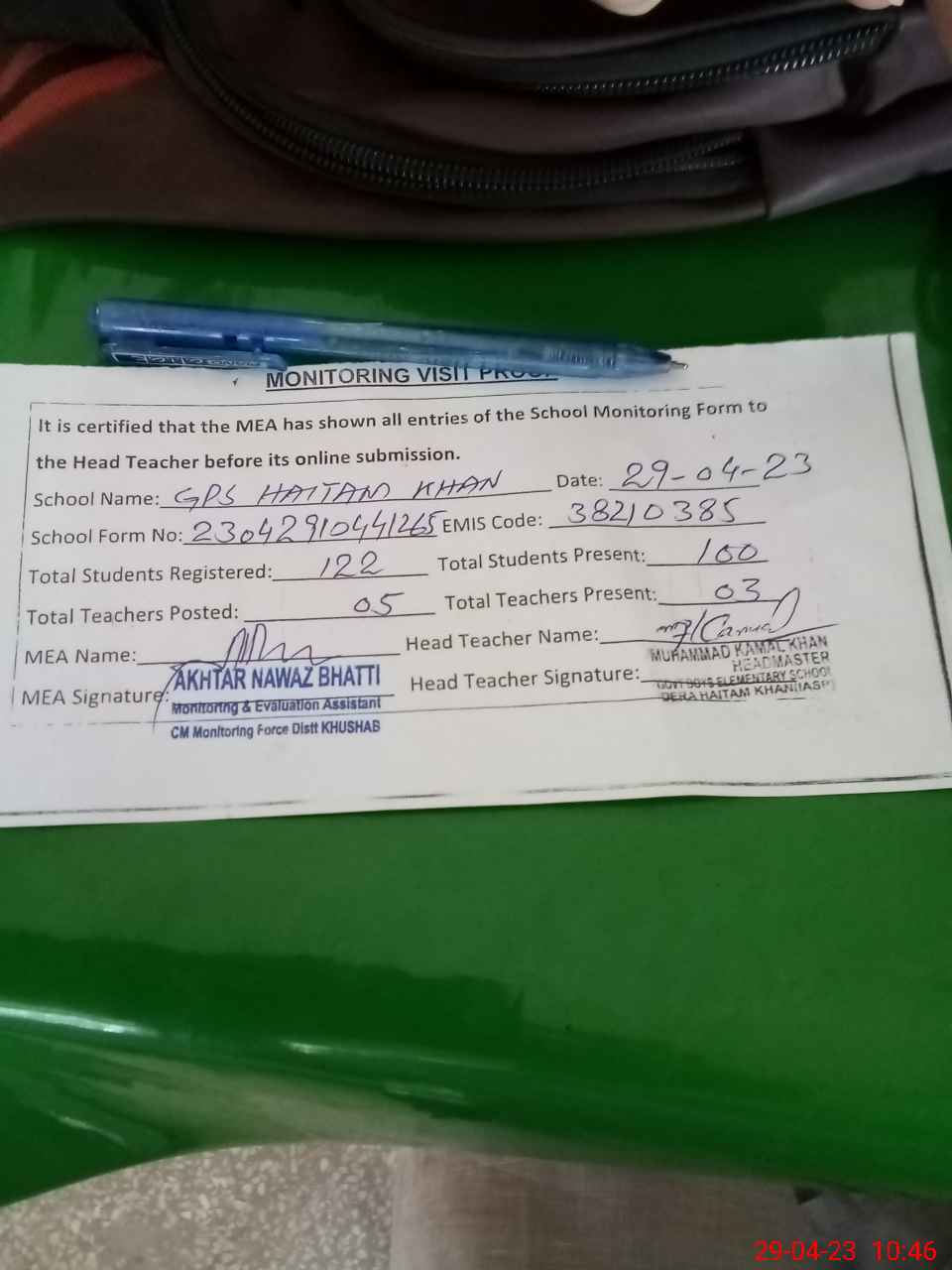 | EMIS Code: 38210385 | Name of School: GPS DERA HAITAM KHAN | |||
