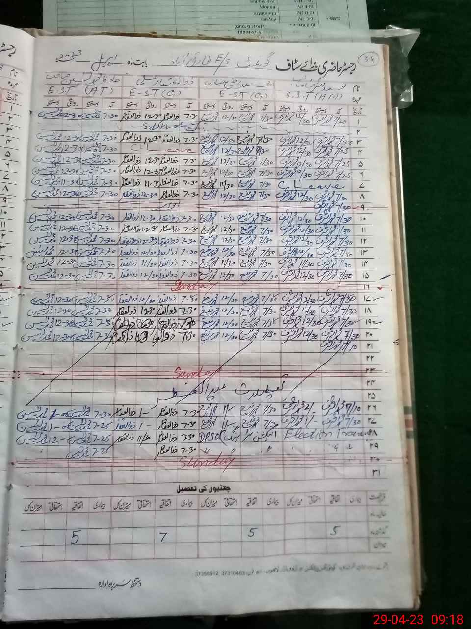 | Remarks (Use Separate Page if Required): As Head teacher was on Election training duty NSB and FTF record not shown | |||||