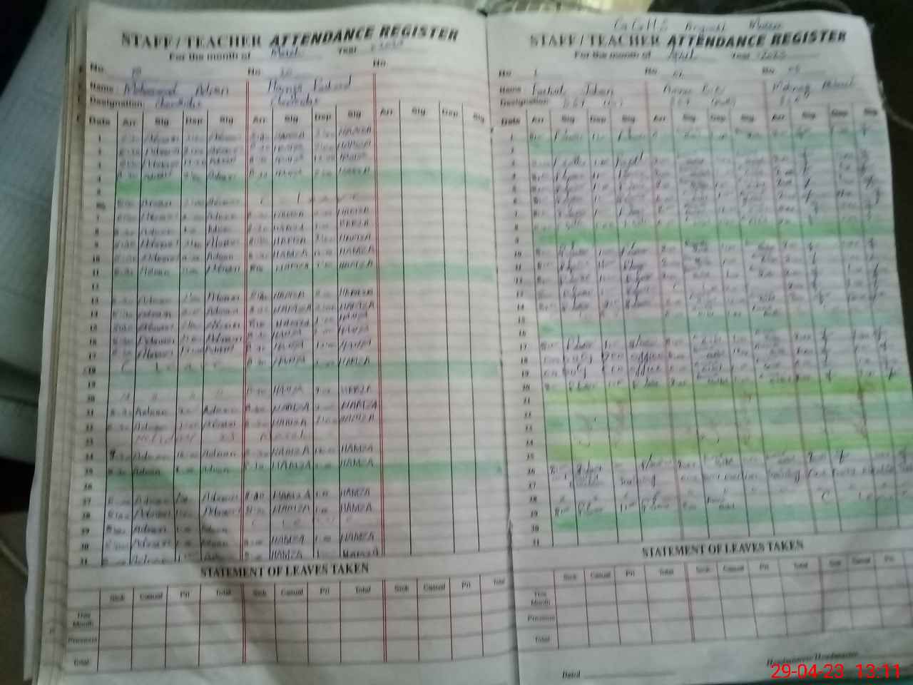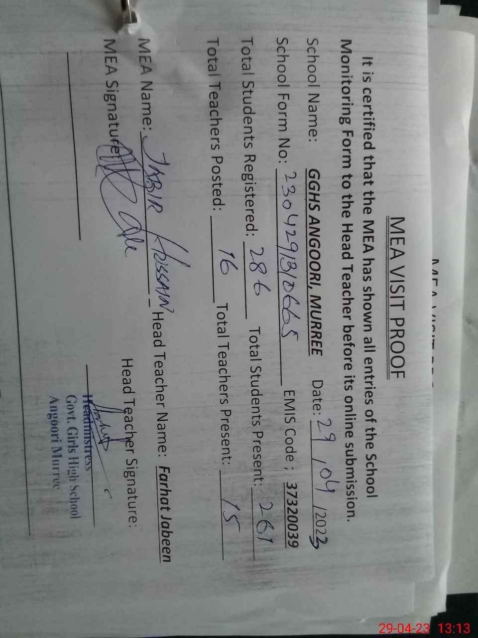 | Attendance Register | Head Teacher | MEA with School | Visit Proof |
