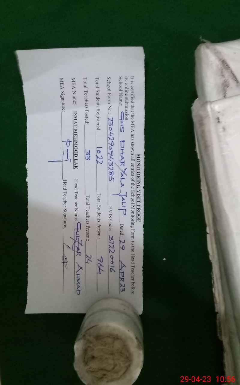 | EMIS Code: 37220016 | Name of School: GHS DHARYALA JALIB | |||