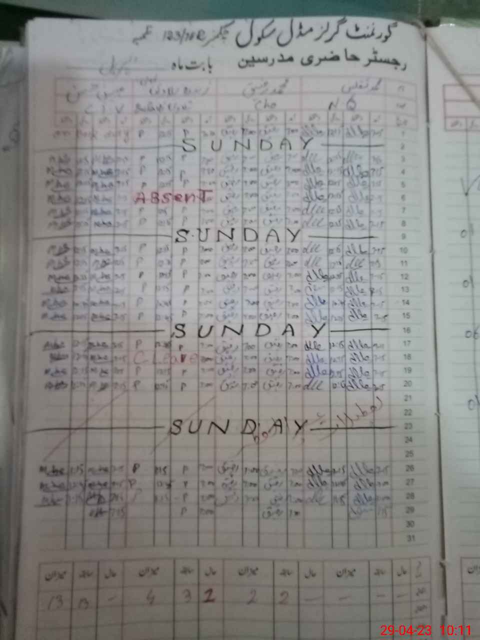 | CNIC | Full Name | Designation | R/C | Absence During Last Calender Month |