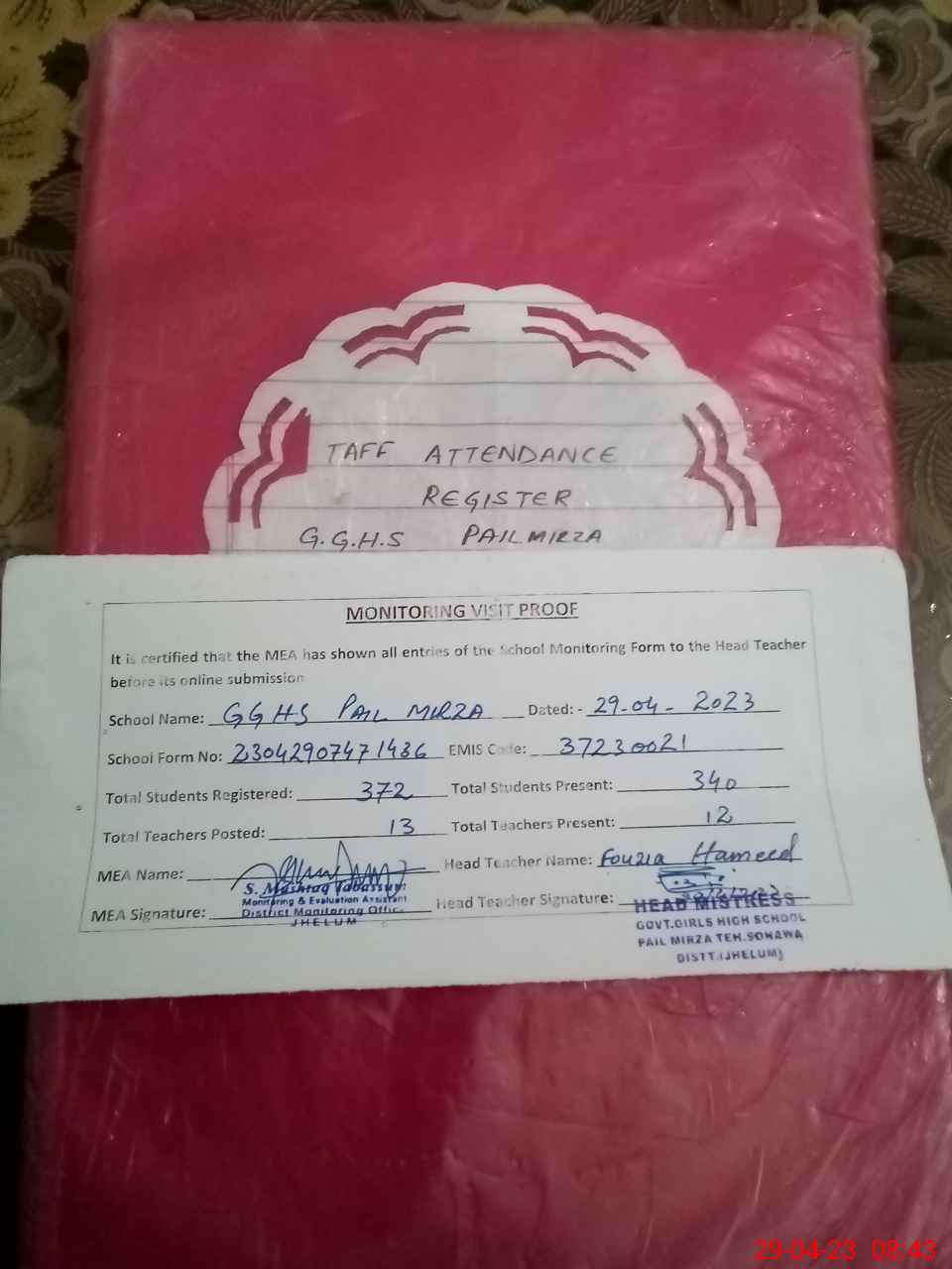 | EMIS Code: 37230021 | Name of School: GGHS PAIL MIRZA | |||