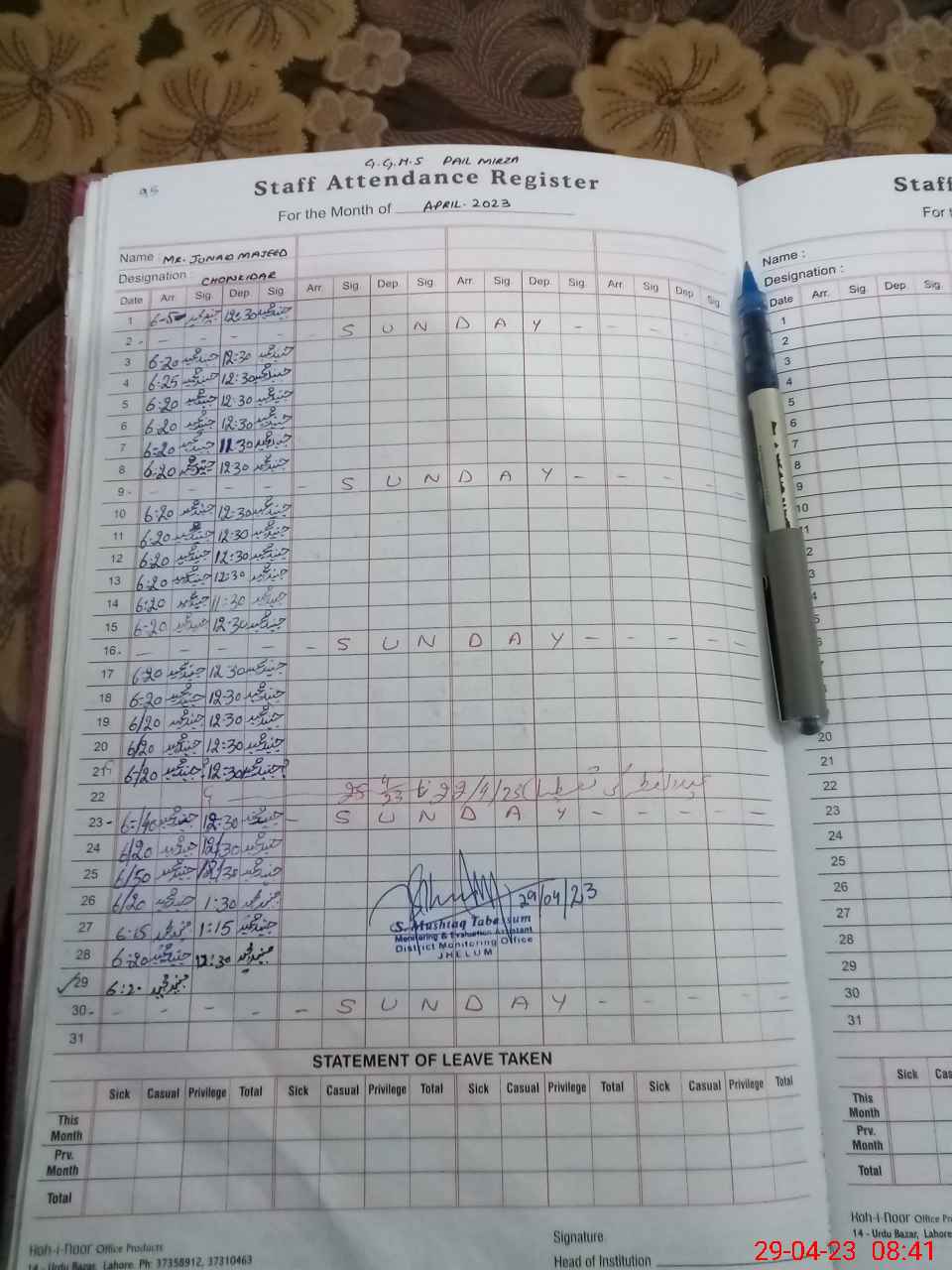 | Name: Fo**** Ha**** Designation: (School Headmaster's/Headmistress's) SST Phone/Cell Number: 03**** |