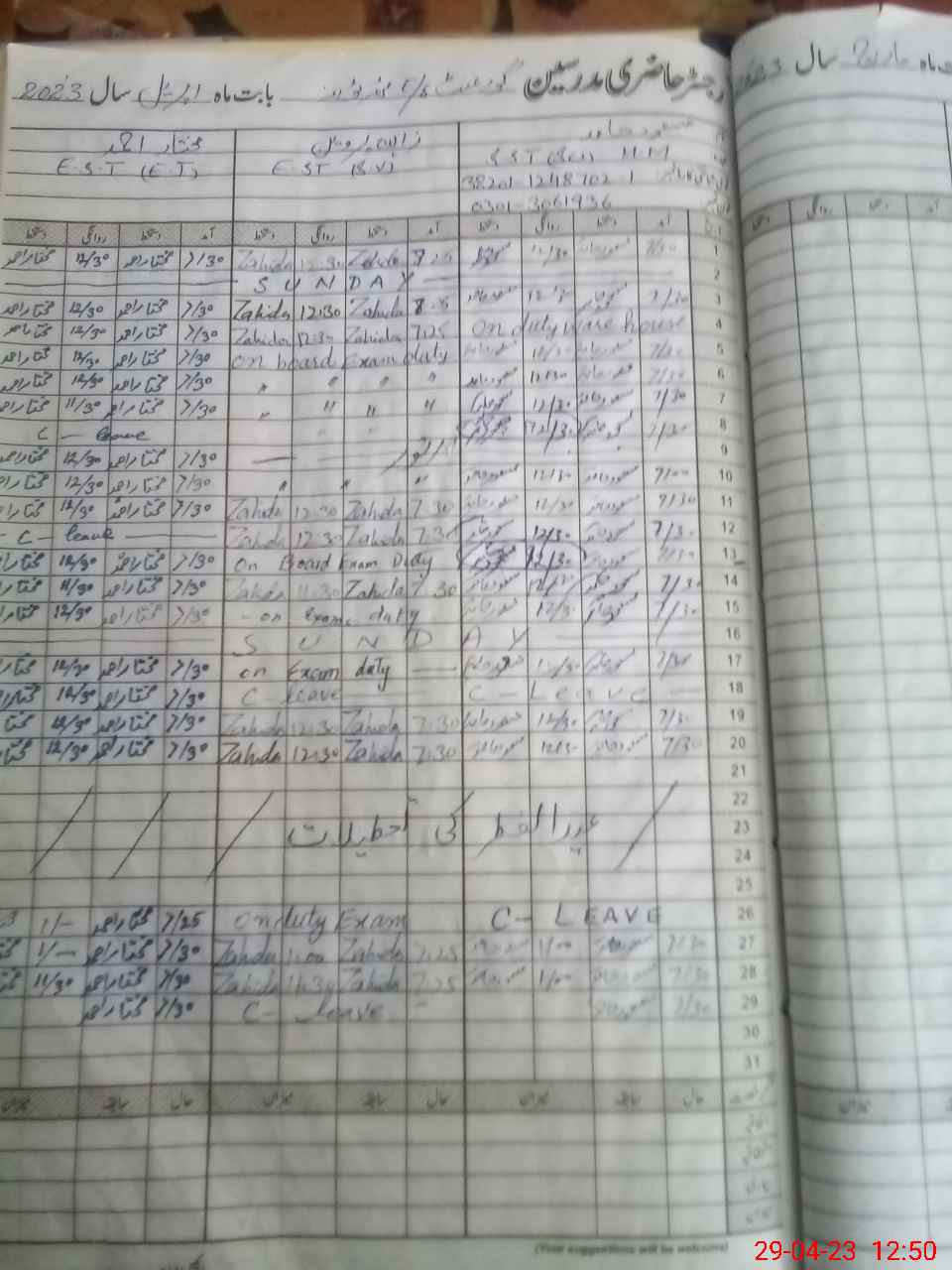 | 38**** | Mu**** As**** Iq**** | EST | Regular | 0 | 0 | 0 | 0 | 0 | 0 | 0 | 0 | 0 | Exam Duty |