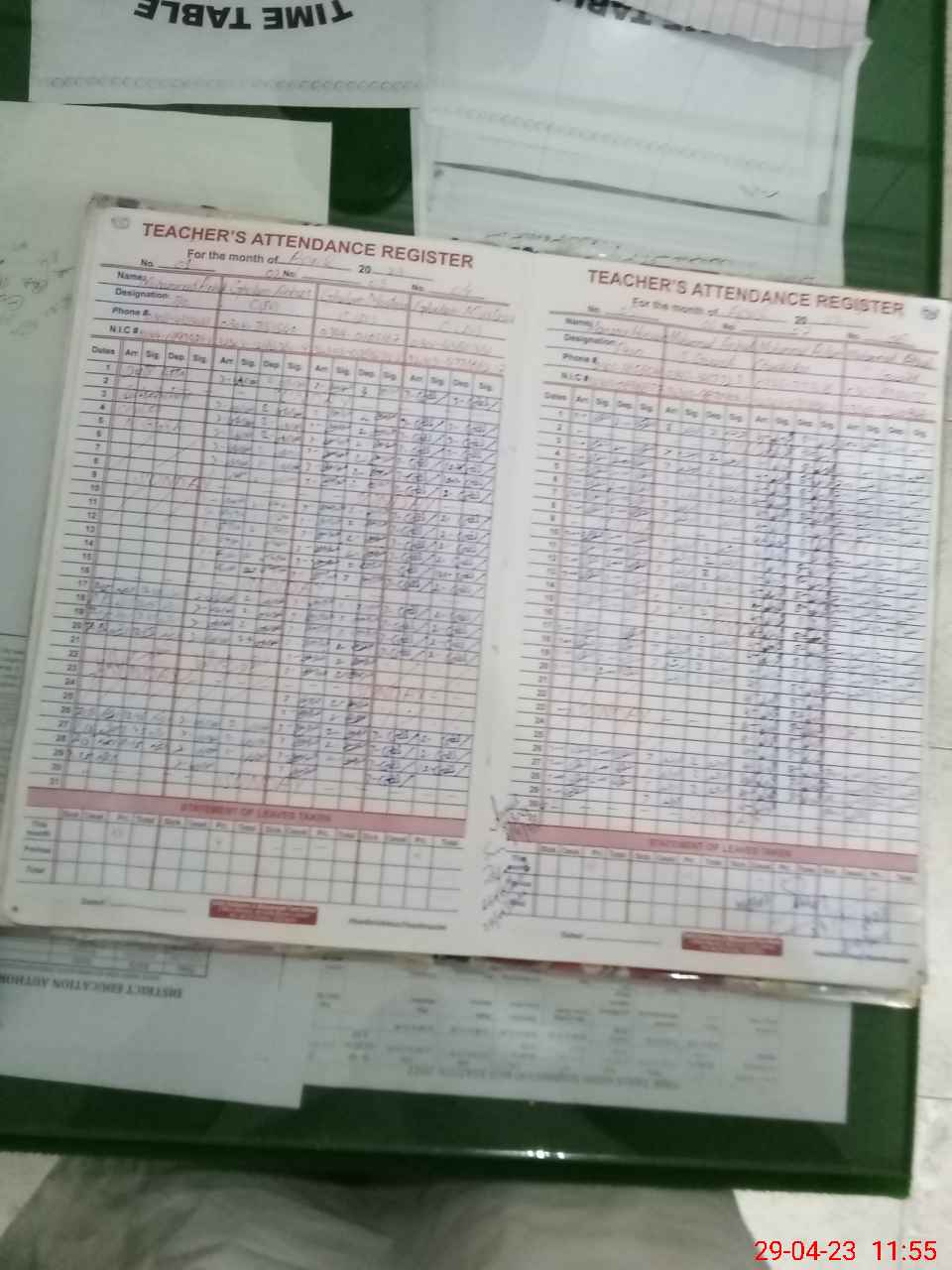 | CNIC | Full Name | Designation | R/C | Absence During Last Calender Month |