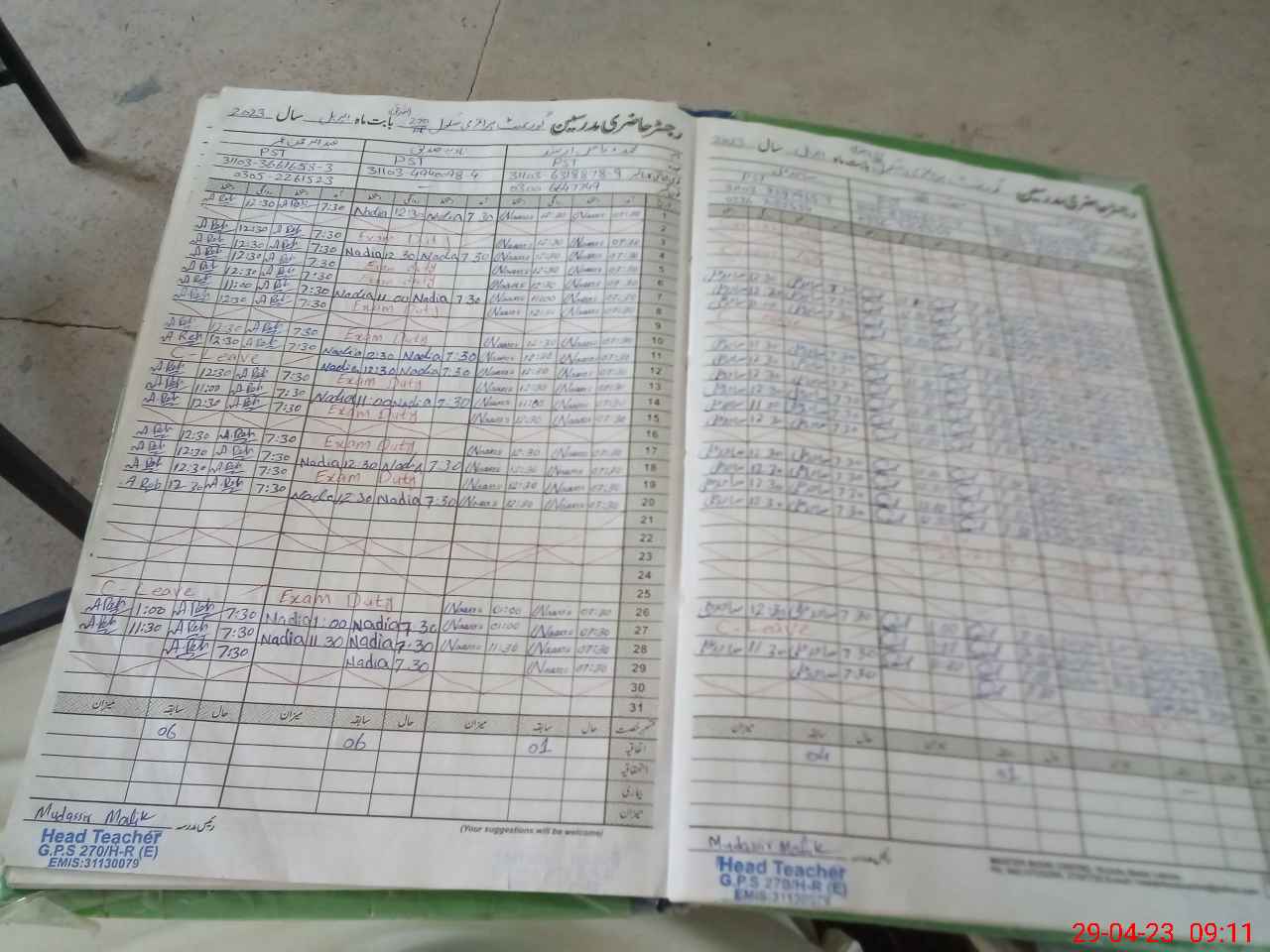 | Name: Mu**** Iq**** Designation: (School Headmaster's/Headmistress's) ESE Art Phone/Cell Number: 03**** |