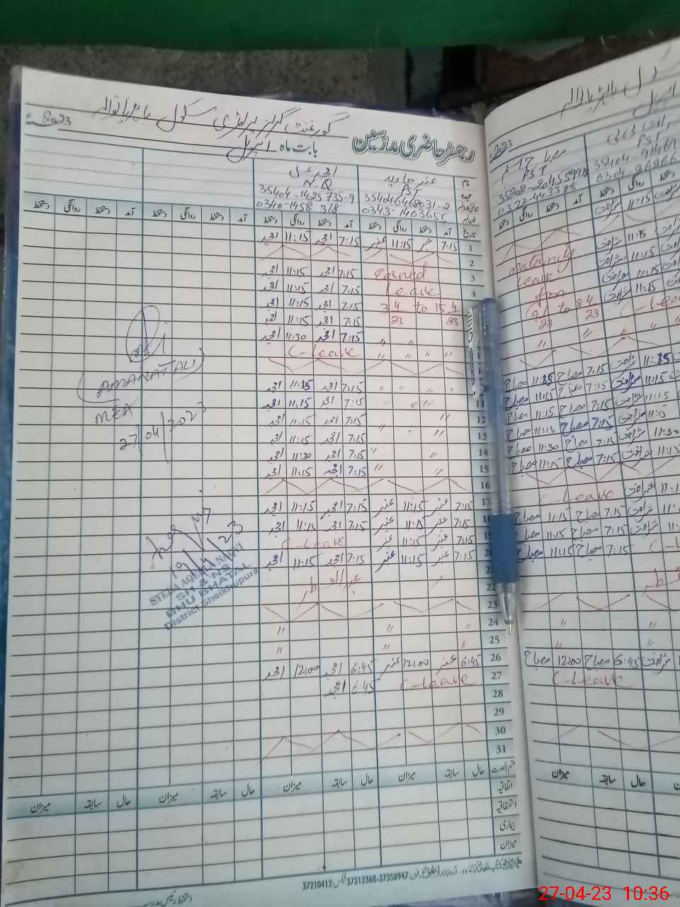 | CNIC | Full Name | Designation | R/C | Absence During Last Calender Month |