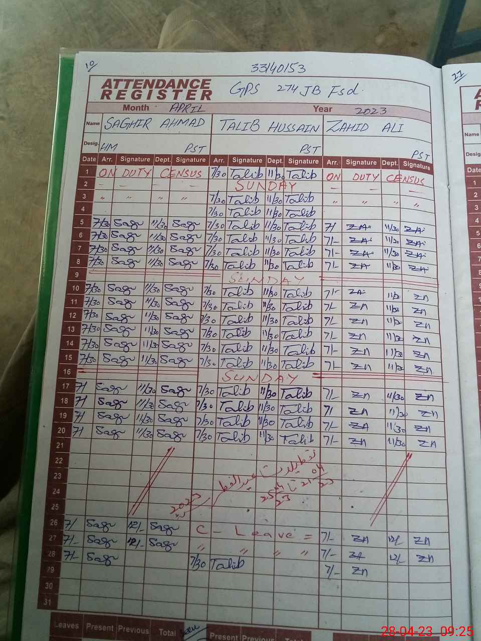 | CNIC | Full Name | Designation | R/C | Absence During Last Calender Month |