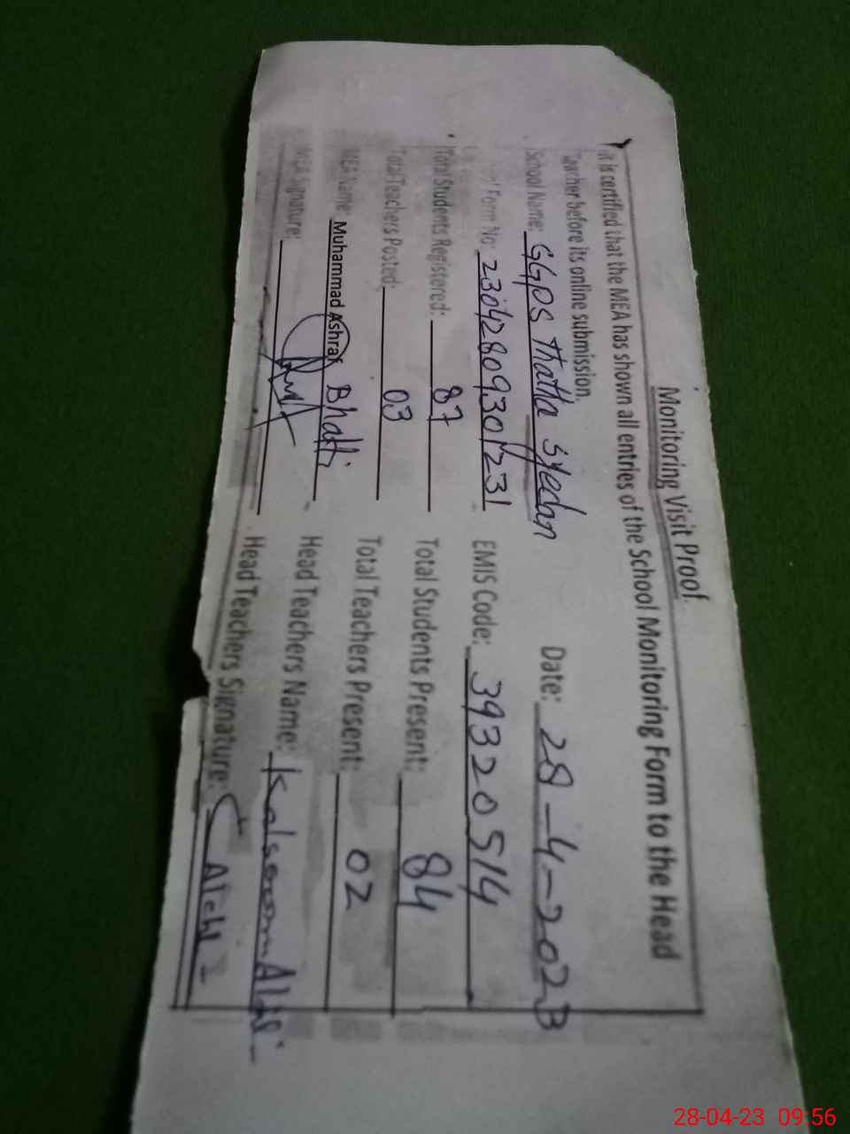 | EMIS Code: 39320514 | Name of School: GGPS THATA SYEDAN | |||