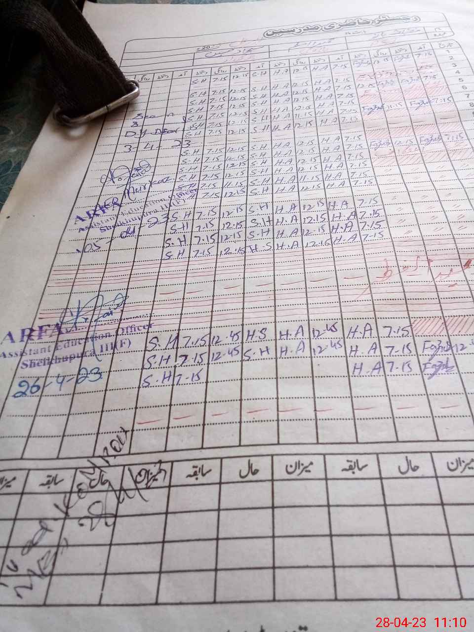 | CNIC | Full Name | Designation | R/C | Absence During Last Calender Month |