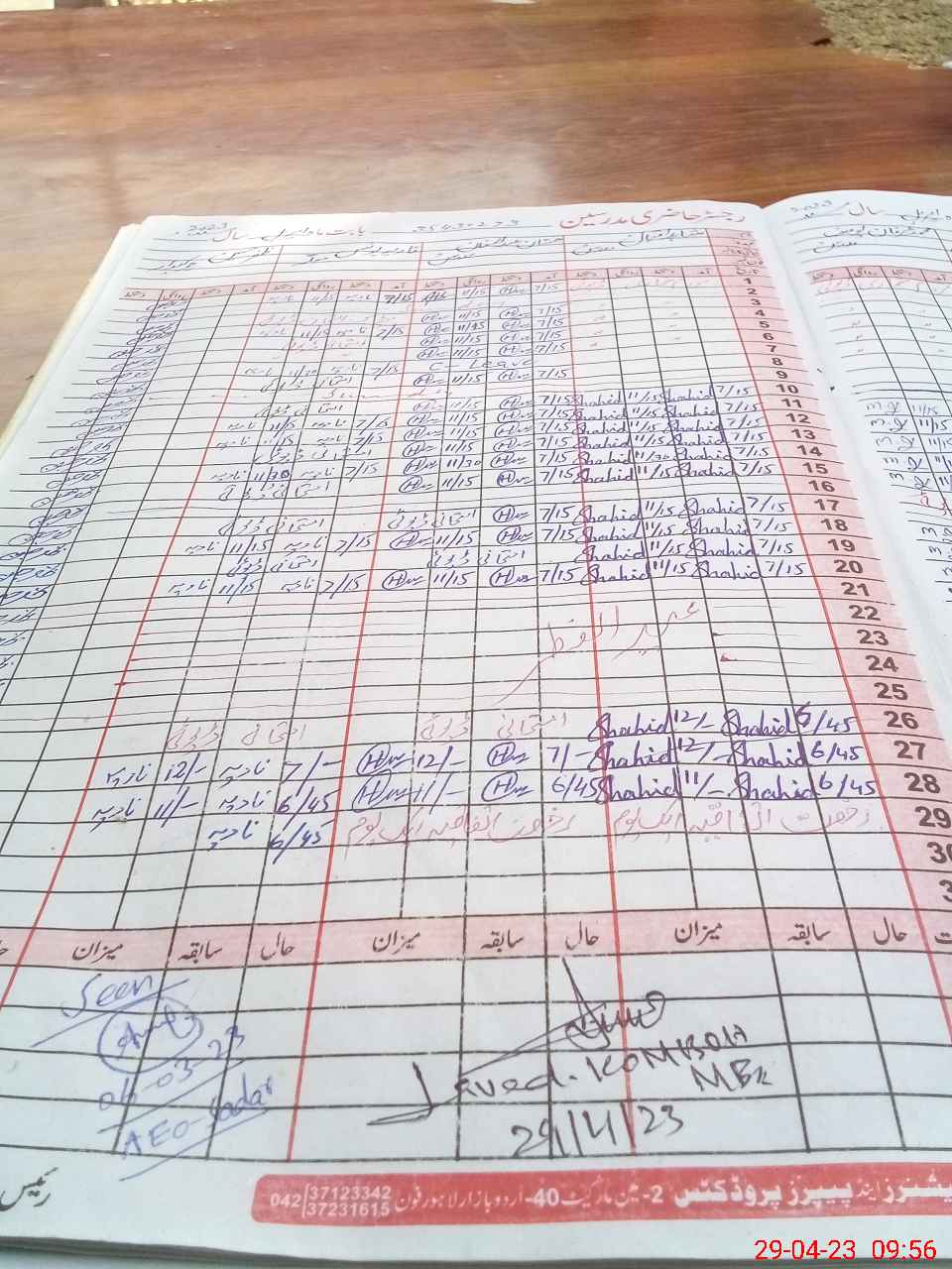 | CNIC | Full Name | Designation | R/C | Absence During Last Calender Month |
