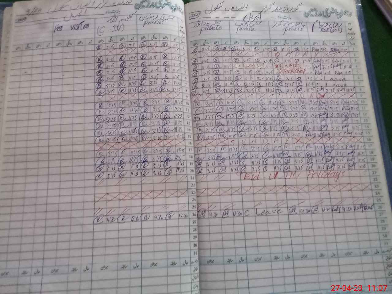 | Leave | Duty | Absent | Maternity | Medical | Ex- Pak |