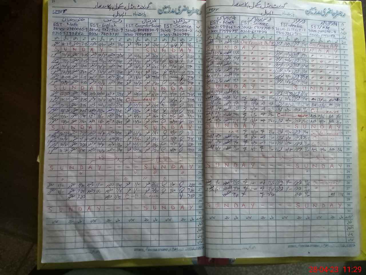 | Name: AM**** AL**** AM**** Designation: (School Headmaster's/Headmistress's) SST(SCI) Phone/Cell Number: 03**** |