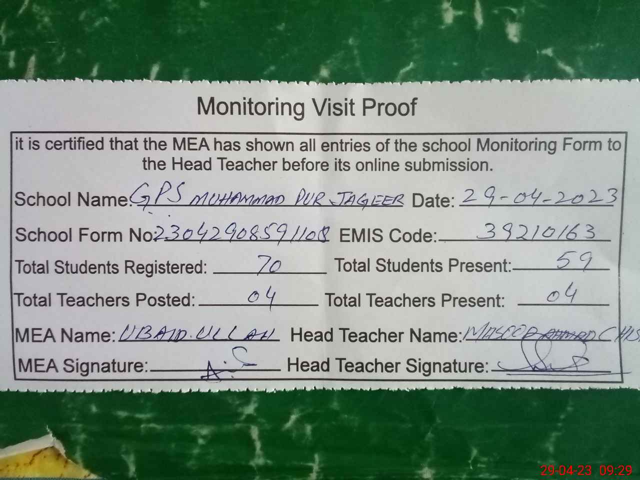 | EMIS Code: 39210163 | Name of School: GPS MUHAMMAD PUR JAGEER PO PAKPATTAN | |||