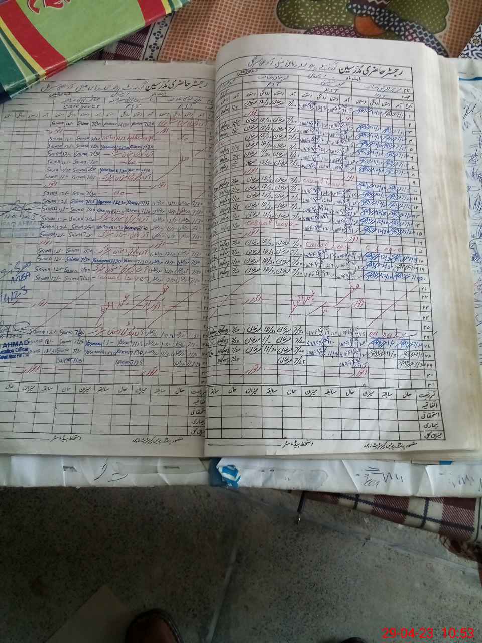 | CNIC | Full Name | Designation | R/C | Absence During Last Calender Month |