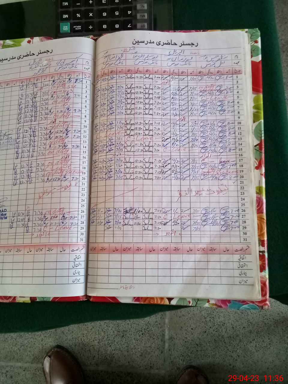 | Leave | Duty | Absent | Maternity | Medical | Ex- Pak |