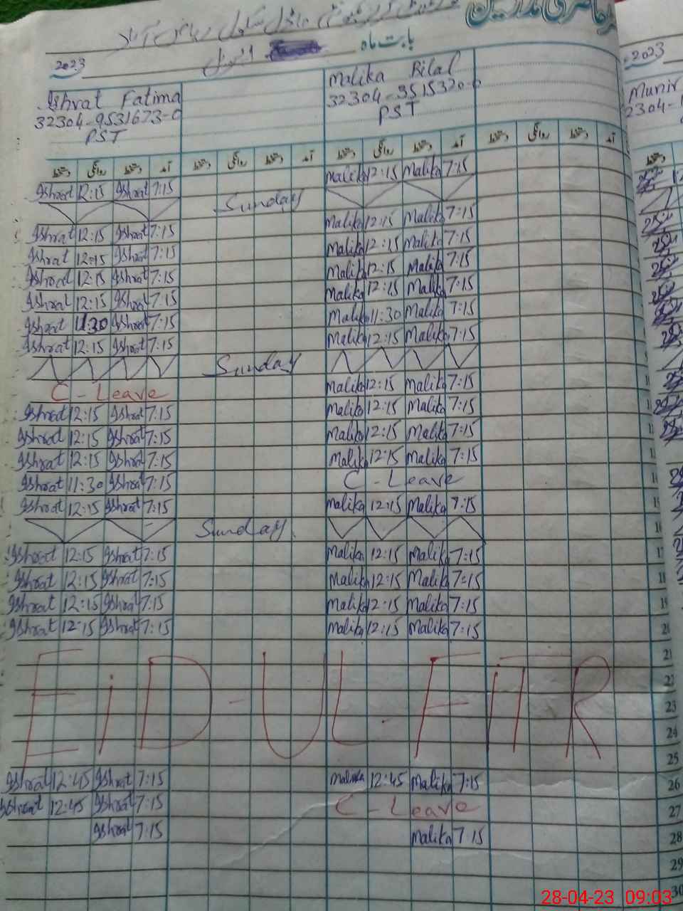 | CNIC | Full Name | Designation | R/C | Absence During Last Calender Month |