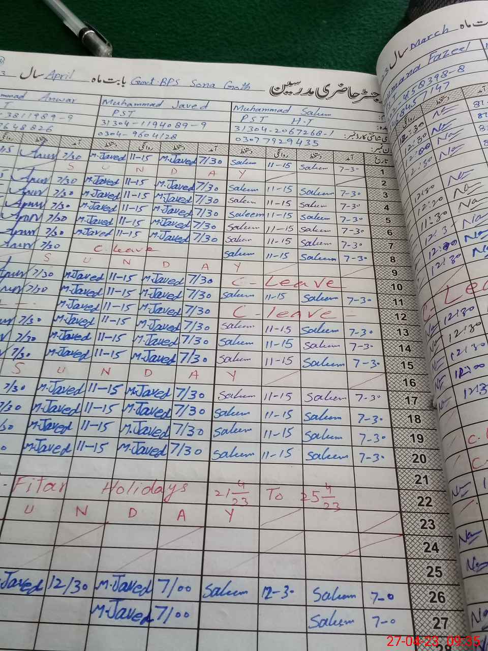 | 31**** | Mu**** Hu**** | PST | Regular | 2 | 0 | 0 | 0 | 0 | 0 | 0 | 0 | 2 | Casual |