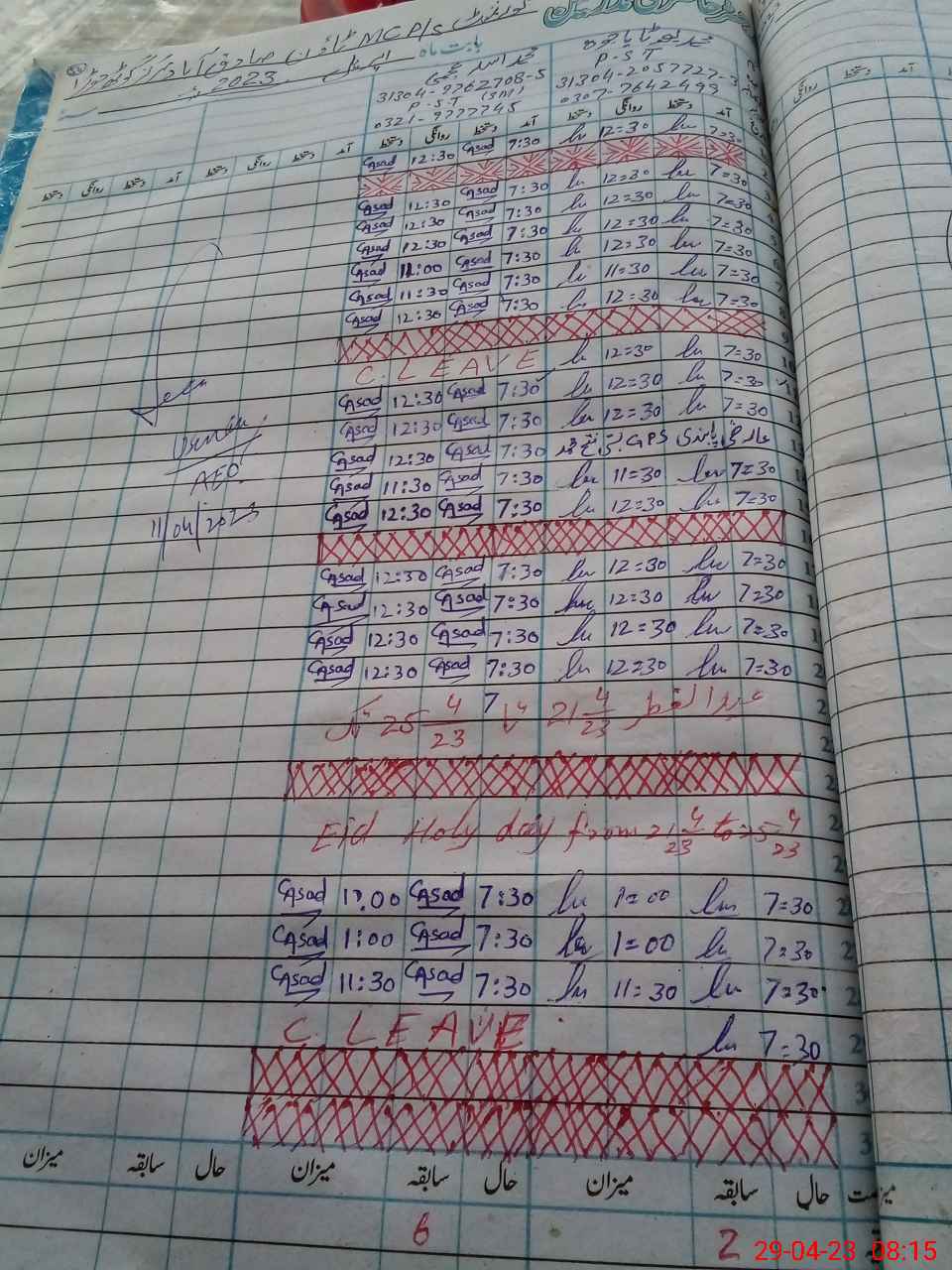 | Leave | Duty | Absent | Maternity | Medical | Ex- Pak |