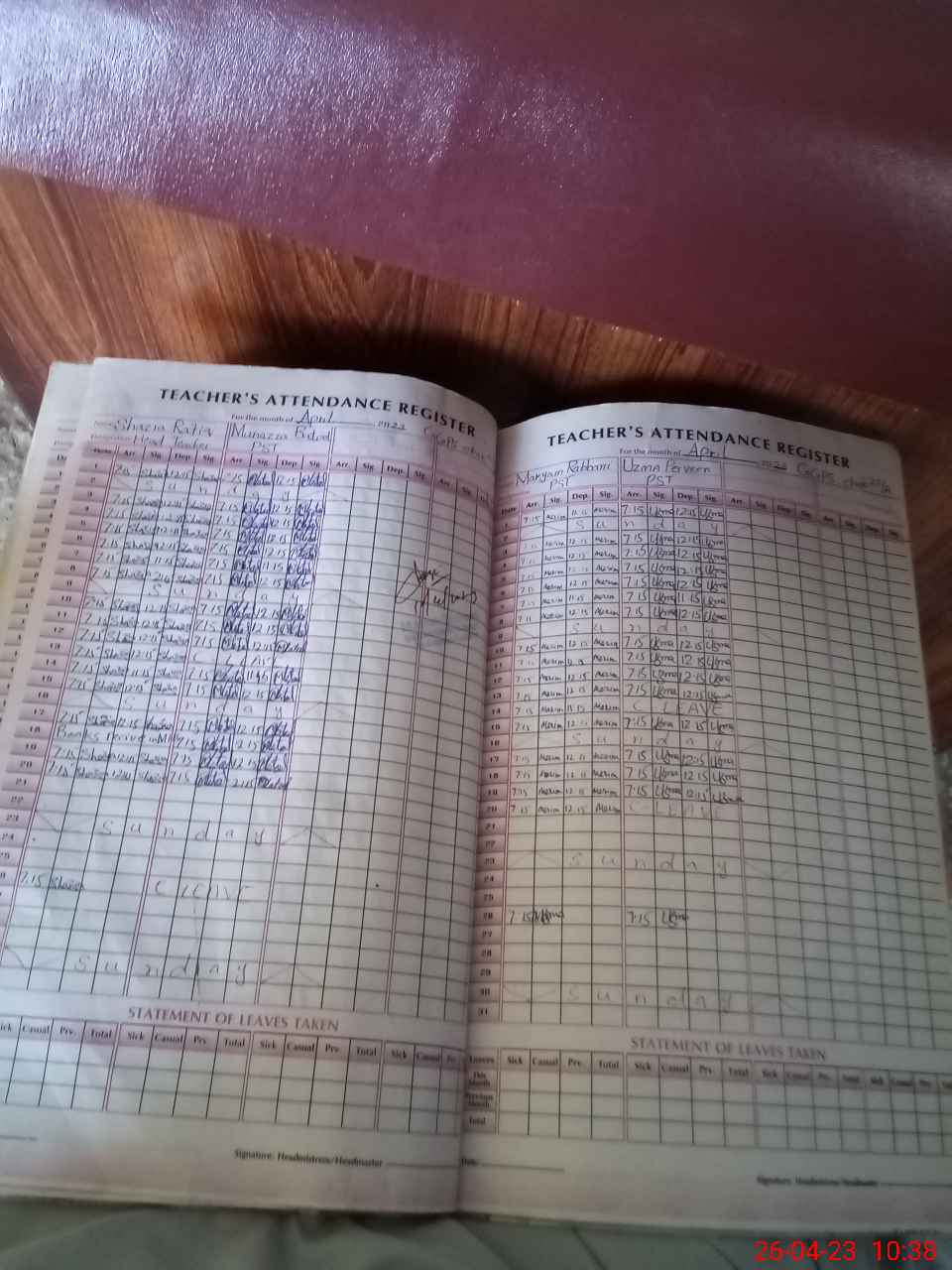 | Attendance Register | Head Teacher | MEA with School | Visit Proof |