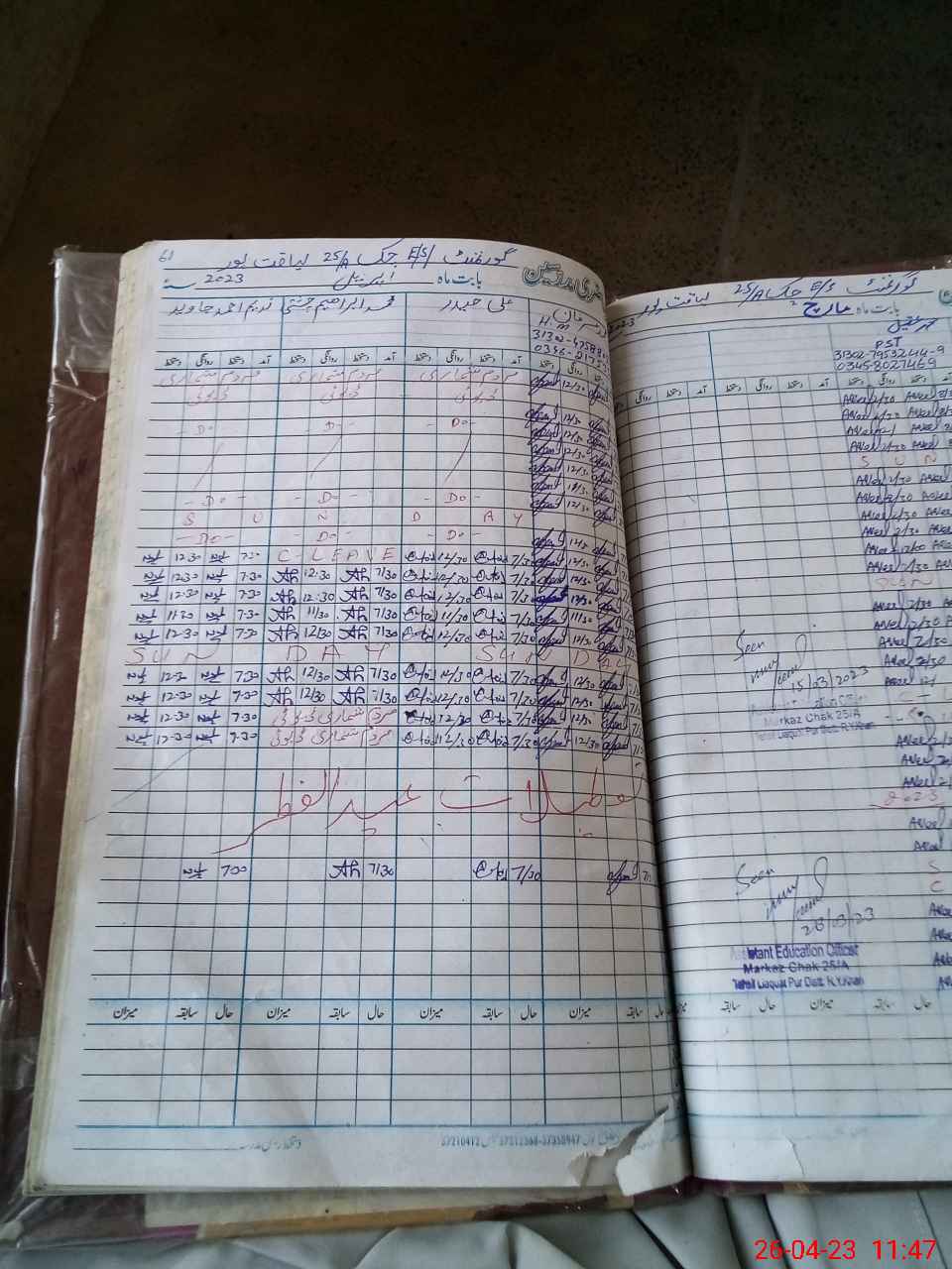 | Name: MU**** IR**** Designation: (School Headmaster's/Headmistress's) SST (Sci) Phone/Cell Number: 03**** |
