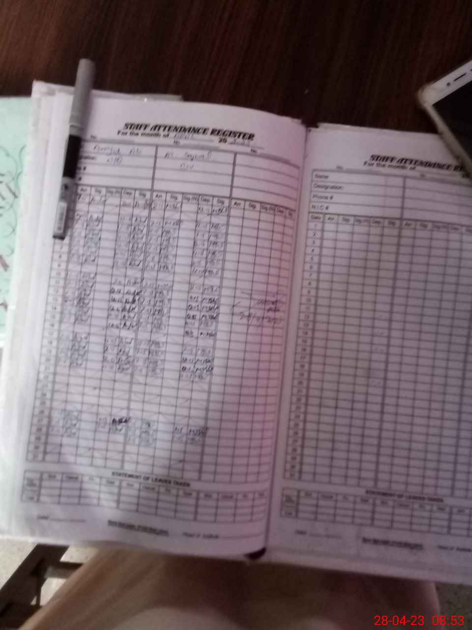 | CNIC | Full Name | Designation | R/C | Absence During Last Calender Month |