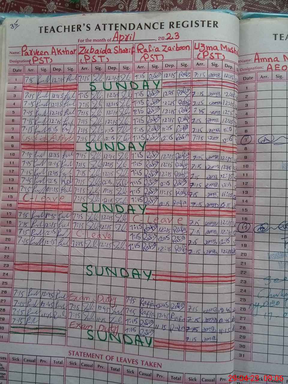 | 31**** | Zu**** Sh**** | PST | Regular | 1 | 0 | 0 | 0 | 0 | 0 | 0 | 0 | 1 | Exam Duty |