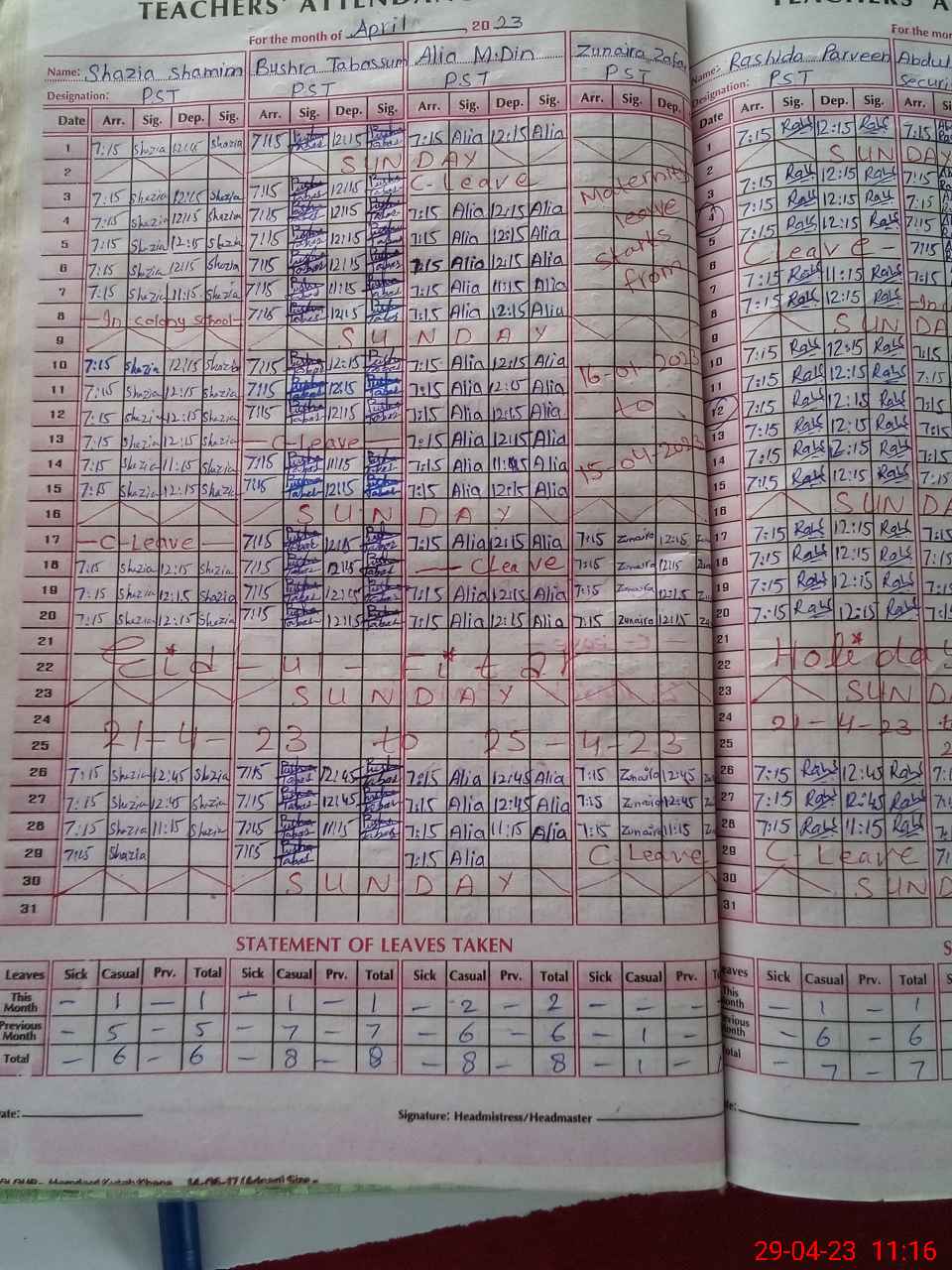 | 31**** | Zu**** Za**** | PST | Regular | 31 | 0 | 0 | 31 | 0 | 0 | 0 | 0 | 0 | Casual |