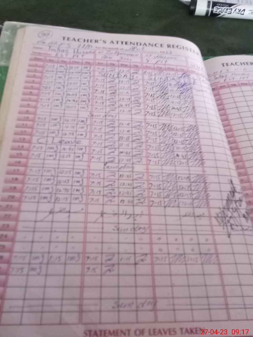 | Remarks (Use Separate Page if Required): Class 5 is promoted Teacher Imtiaz Hussain EST PET is temporarily Attached from ghs jarala since 27 Mar 2023 and found present | |||||