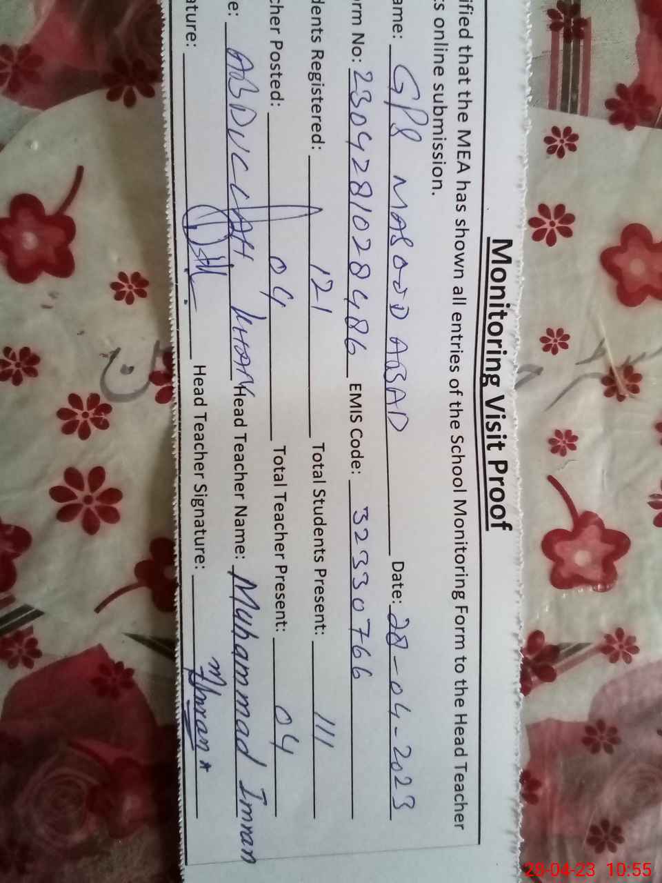 | EMIS Code: 32330766 | Name of School: GPS MASOOD ABAD | |||
