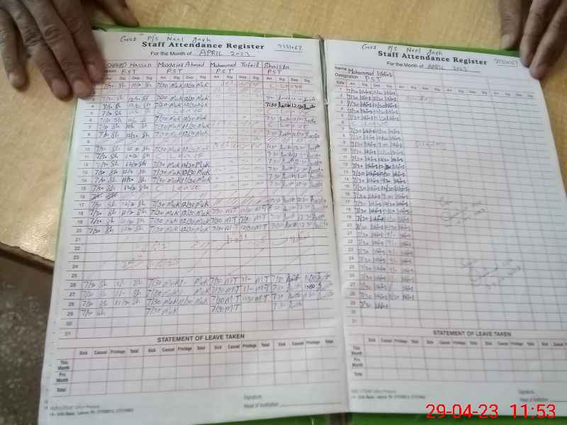 | CNIC | Full Name | Designation | R/C | Absence During Last Calender Month |