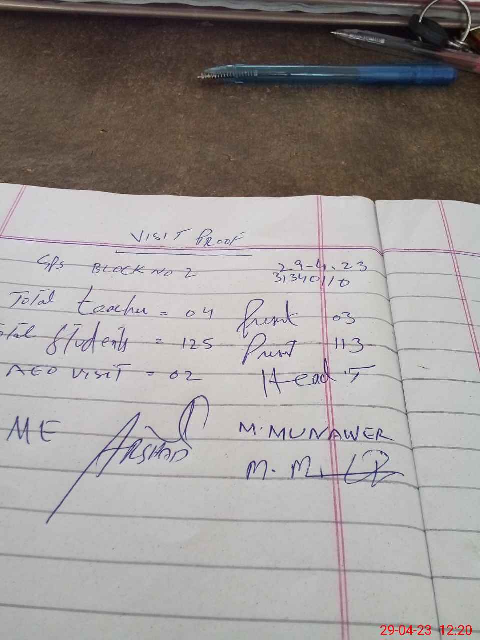 | EMIS Code: 31340110 | Name of School: GPS BLOCK NO. 2 MUHAJIR COLONY | |||