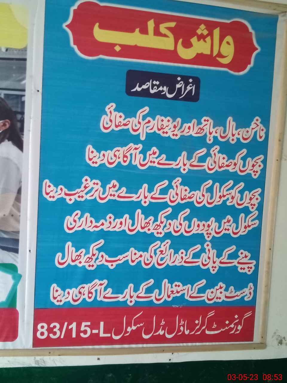 | District: KHANEWAL | Tehsil: MIAN CHANNU | Markaz: 105/15-L - FEMALE | Level: Middle | |